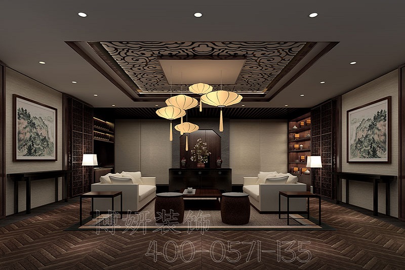 南京传统中式茶室装修设计案例效果图