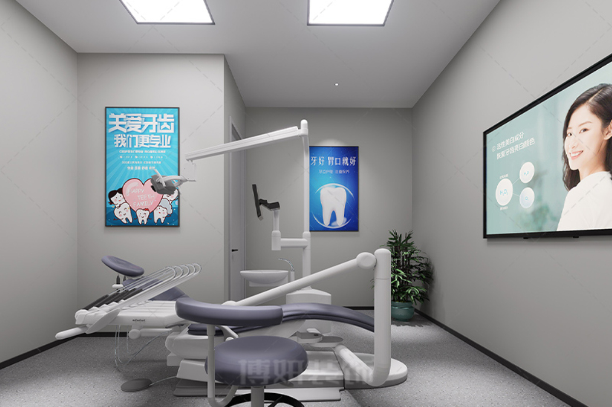 4. 照明设计: 诊疗区使用专业牙科灯,其他区域采用柔和灯光,营造舒适环境。