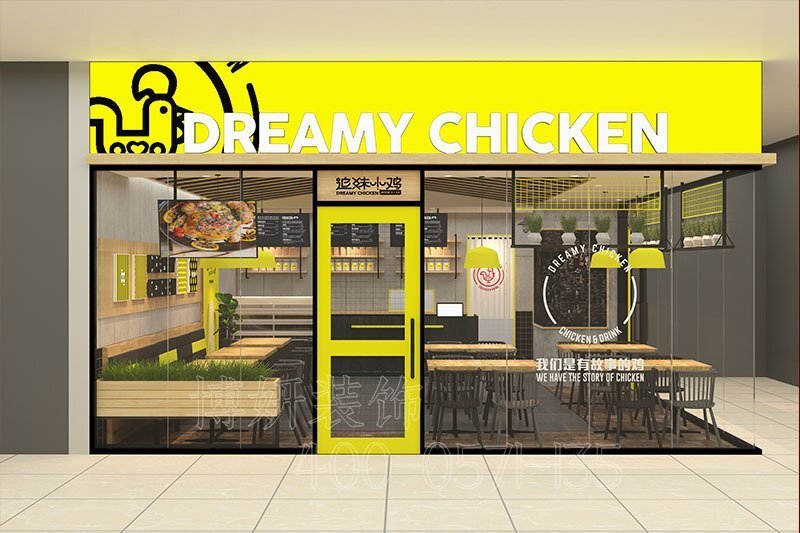 案例名称:南京风格炸鸡小吃店装修设计方案效果图-南京博妍装饰公司