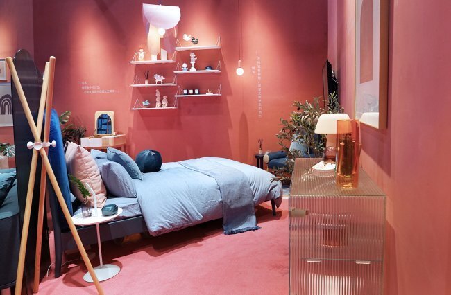设计理念:设计首先从色彩的处理方式入手,试图做出强调彼此之间的强烈对比关系来塑造空间的第一印象和沉浸体验感,主要采用了偏深沉冷静的星辰蓝和明亮活泼的温柔粉作为空间的主要色彩表现,配合丰富而高饱和度的灯光色彩变化,营造空间整体环境色。